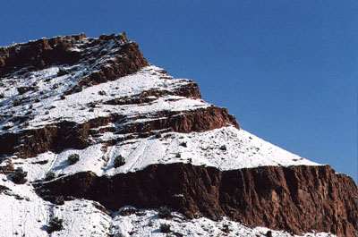 Our Red Hill in winter, sits just behind us along the river.